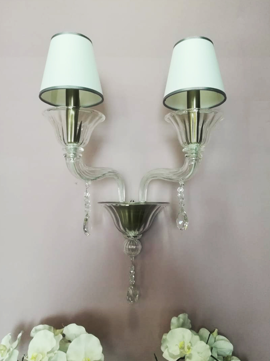 Комплект прекрасных, элегантных бра с острова Мурано, Венеция. Муранское стекло, металл. Люстра одной из старейших фабрик-производителей предметов освещения из муранского стекла. Изящная коллекция интерьерного освещения на стыке классики и современности.